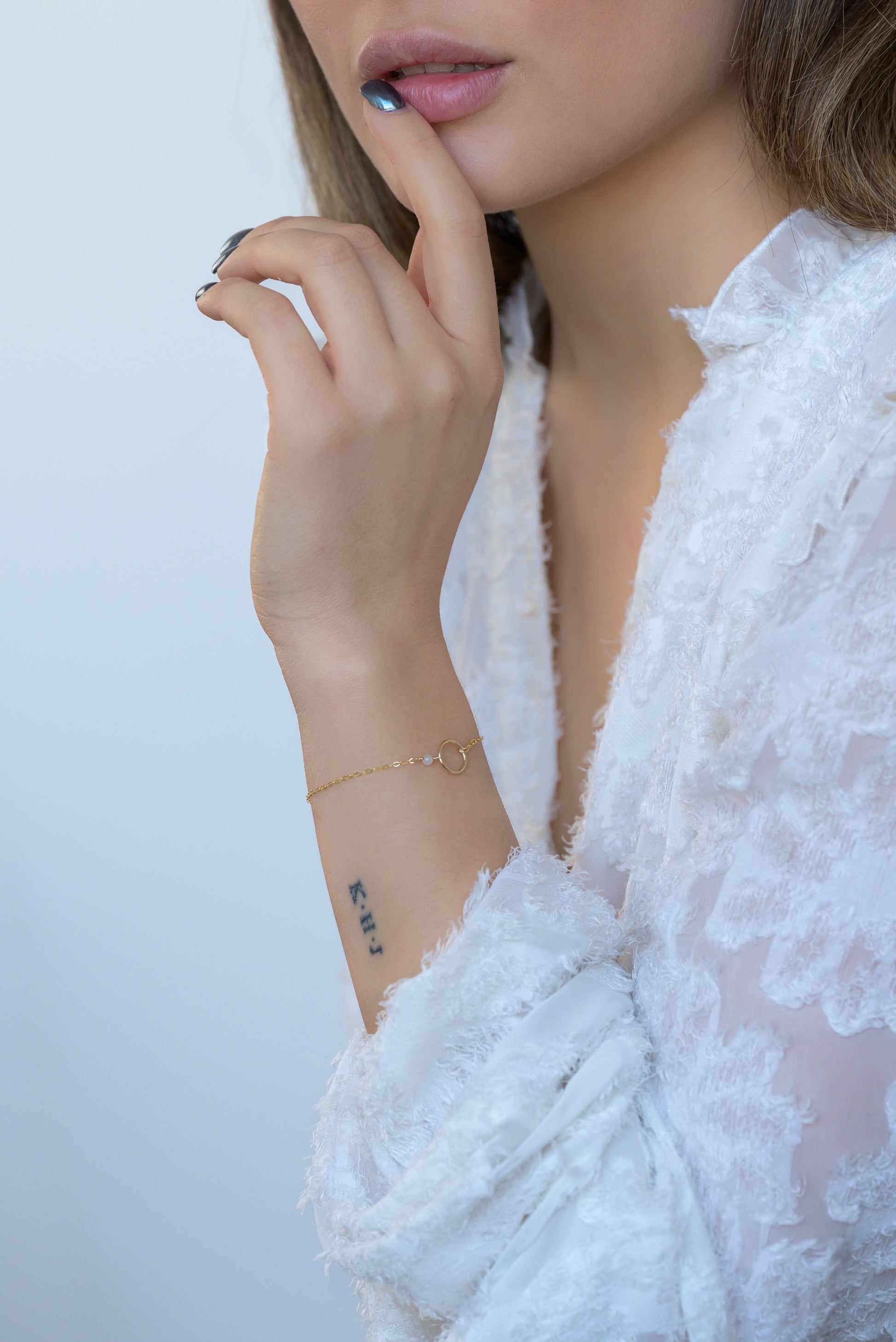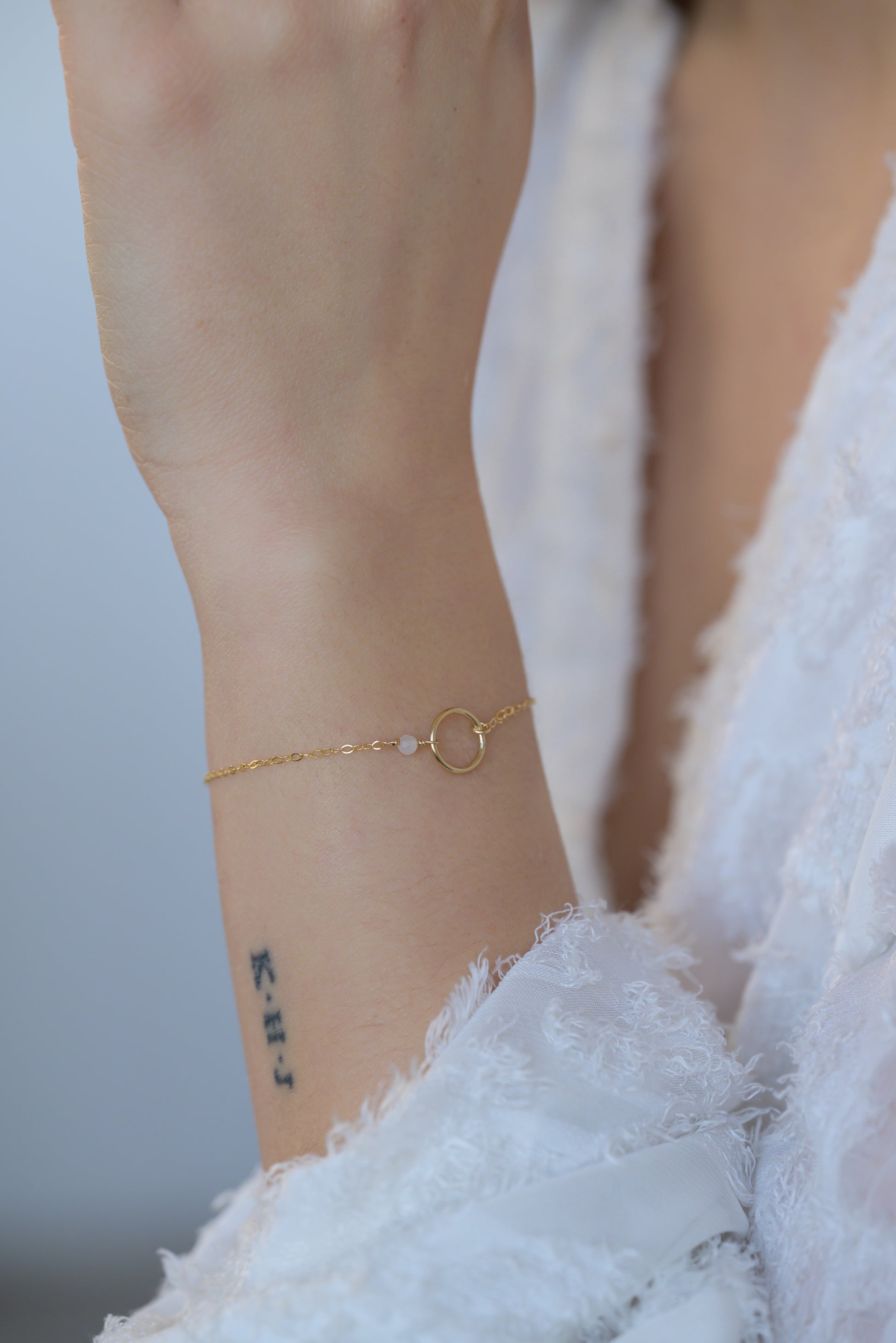 Jemný náramek s malým karma kroužkem a broušeným měsíčním kamenem.