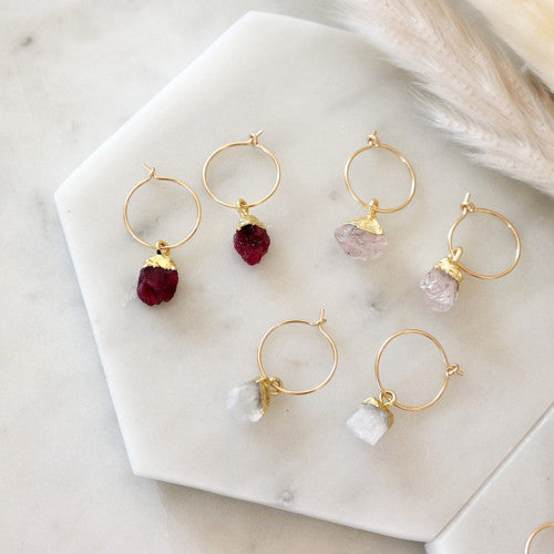 Úzké kruhy se surovými kameny různých barev: rubín (rudofialová), růženín (světle růžová), měsíční kámen (čirá až bílá), smaragd (zelená), nebo akvamarín (světle modrá až modrozelená) - vyprodán.