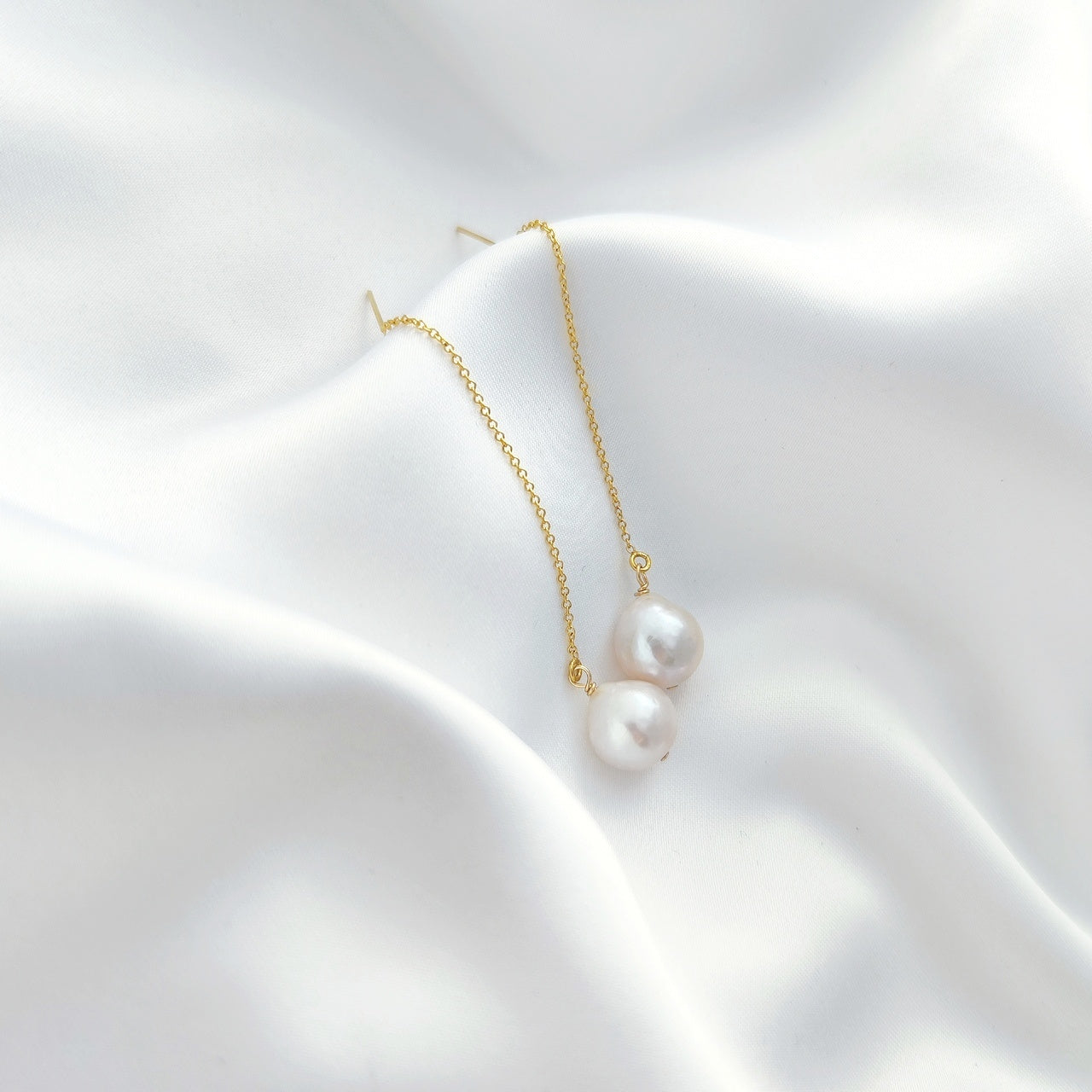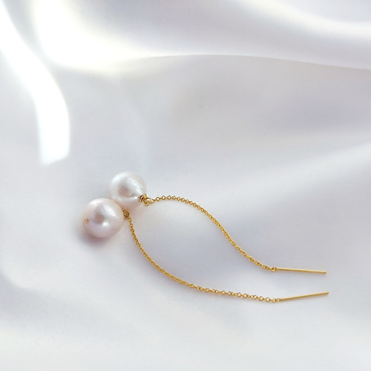 Délka náušnic včetně perel je asi 8,3 cm (i včetně tyček na konci), průměr perel je kolem 1 cm. Perly se velikostně a tvarově velmi mírně liší. Do páru se vždy snažíme vybírat co nejpodobnější.