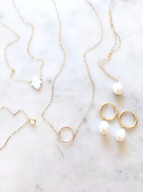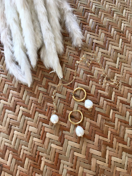 Materiál: sladkovodní perla, 14 kt zlatem plněná (gold filled) mosaz.