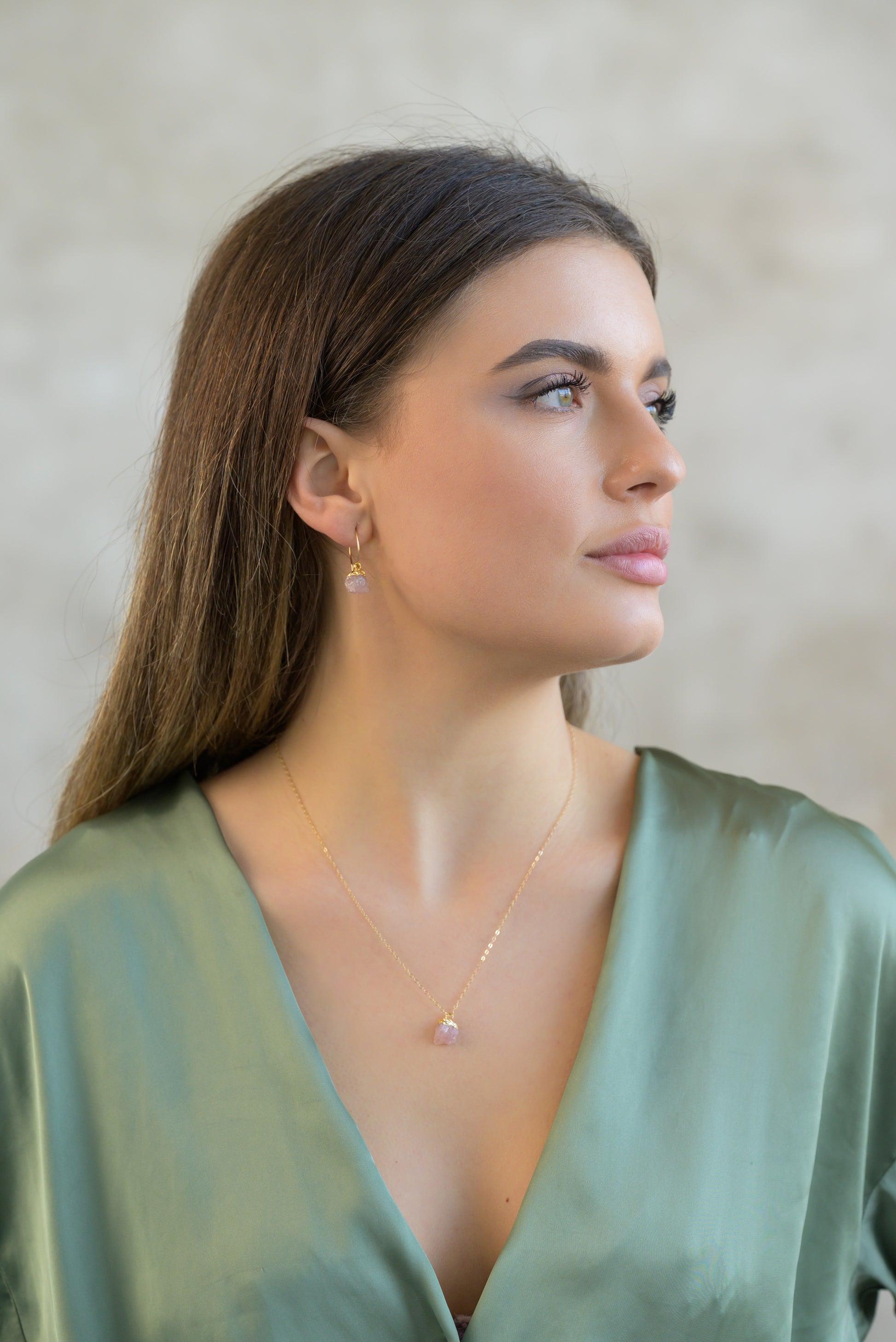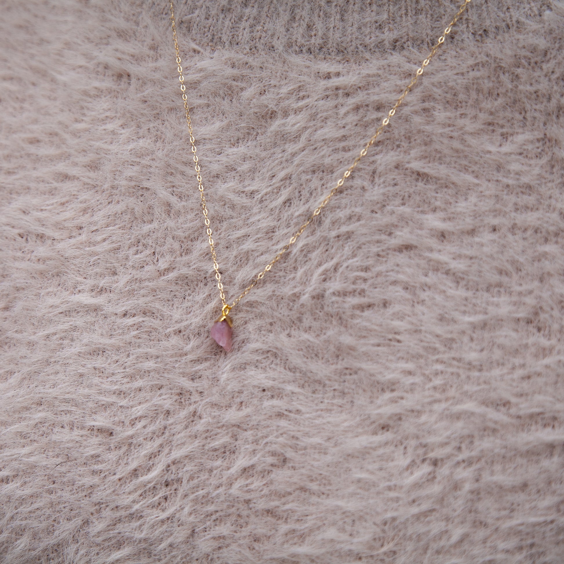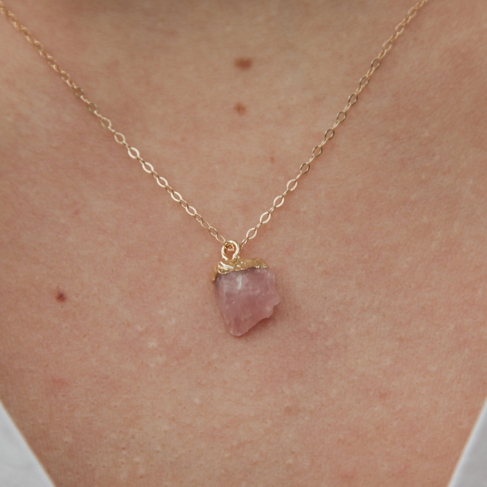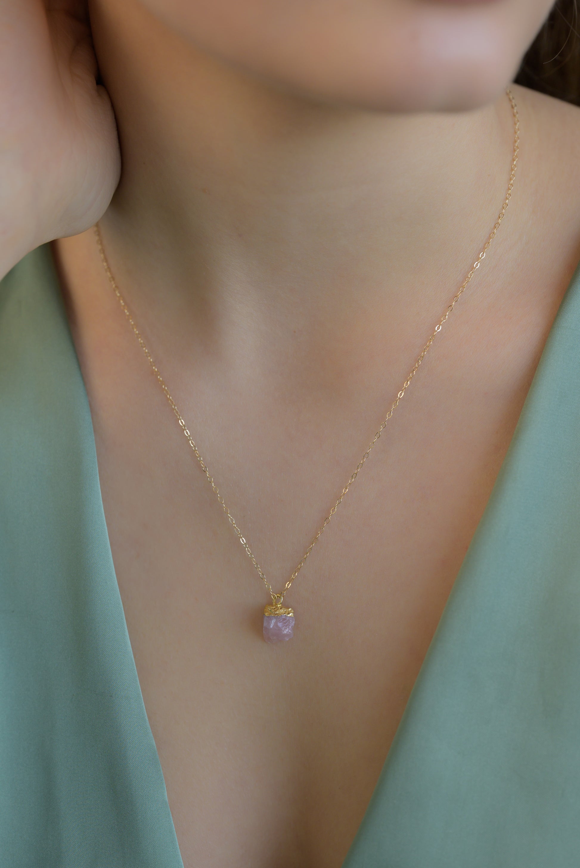 Jemné řetízky plněné zlatem (gold filled) s nádhernými surovými drahokamy. Můžete je nosit samostatně nebo kombinovat.
