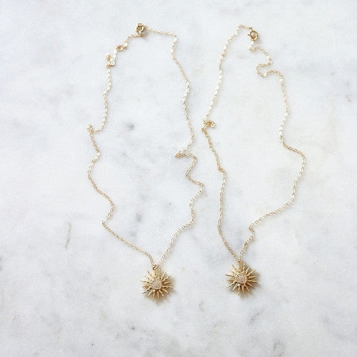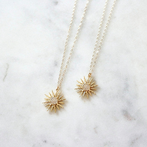 Set dvou řetízků se sluníčky vykládanými zirkony pro maminku a dceru. Jemné, minimalistické šperky. Řetízky jsou plněné zlatem (gold filled).