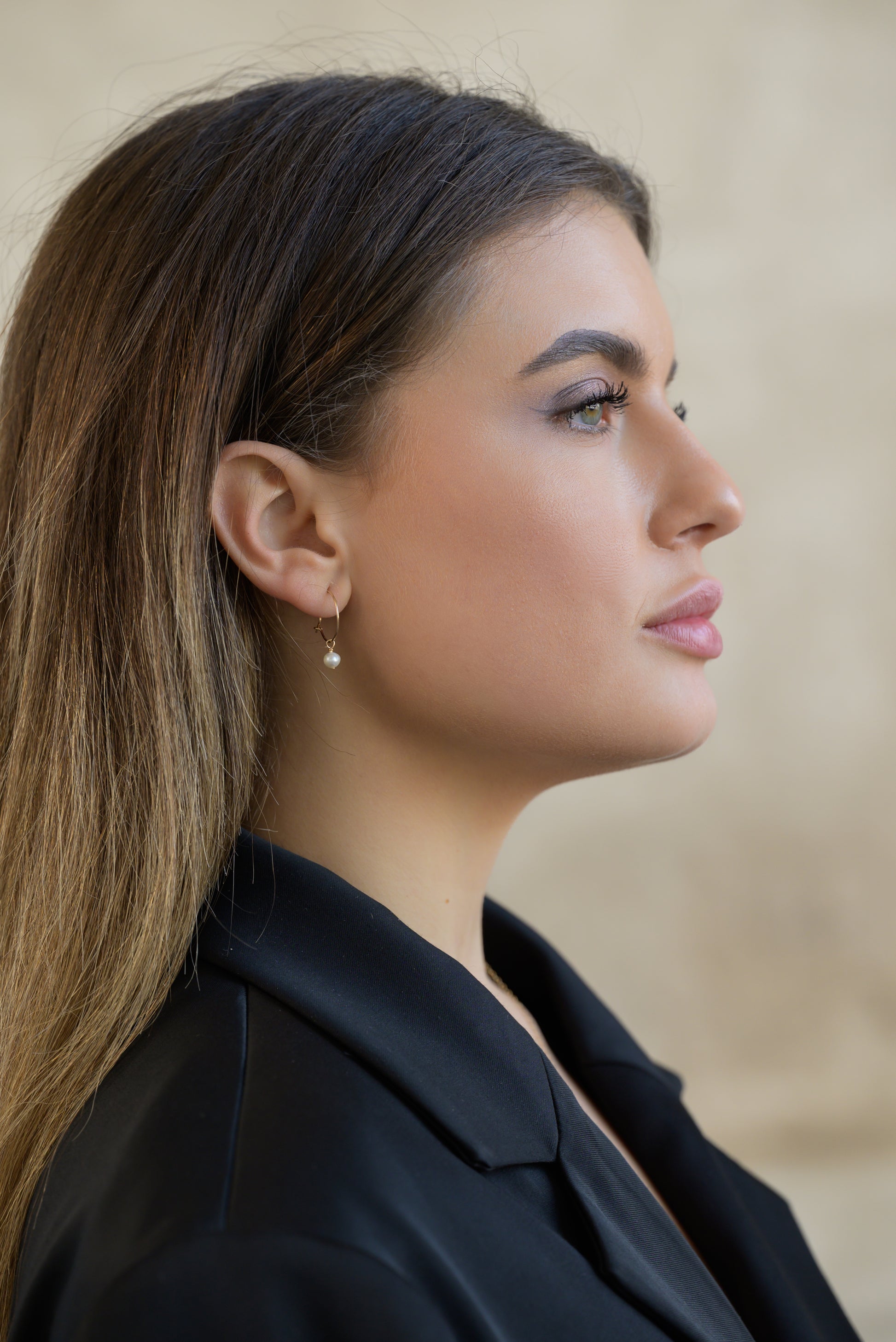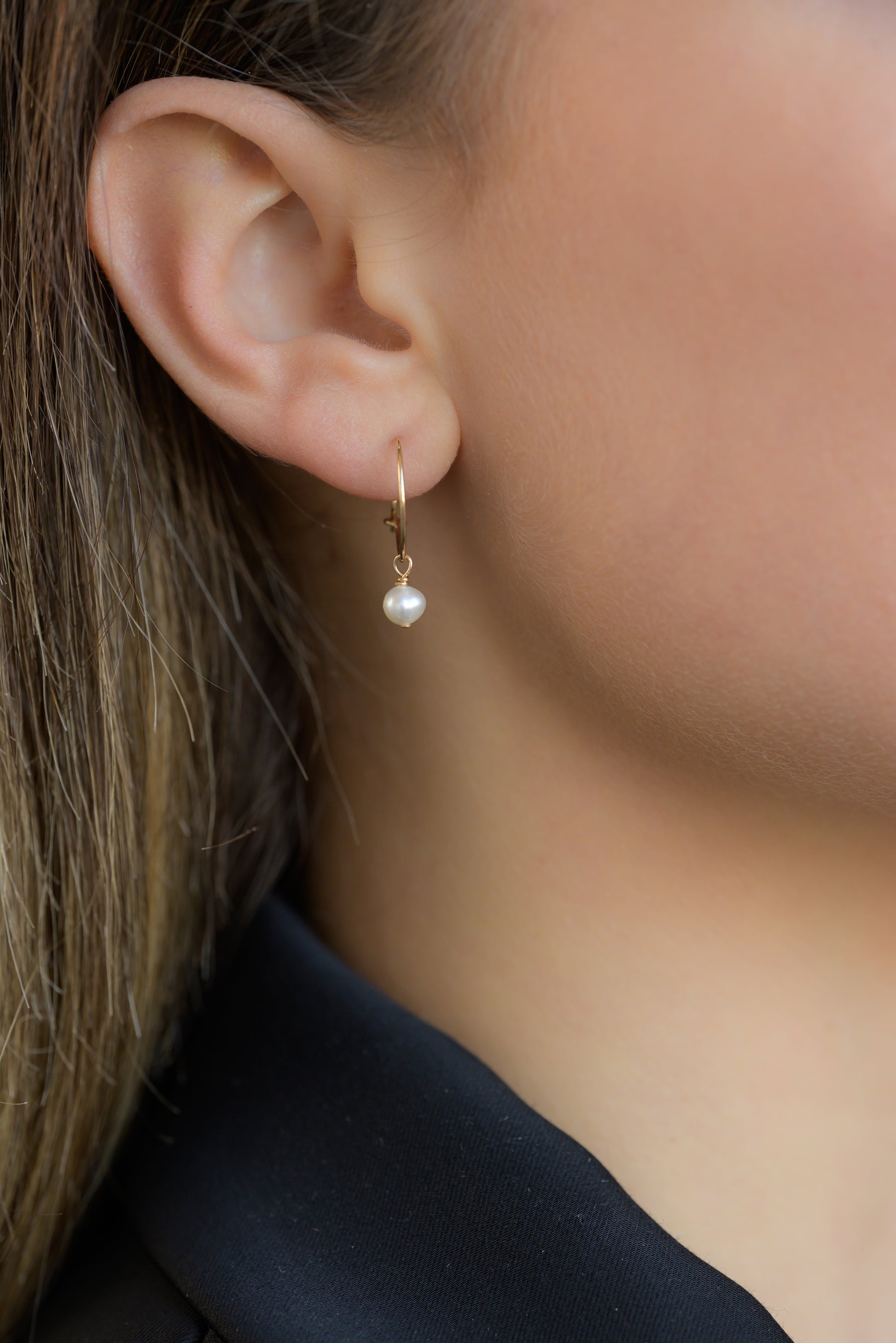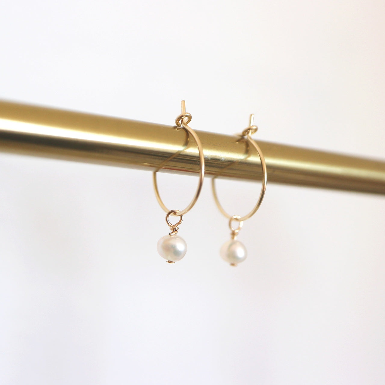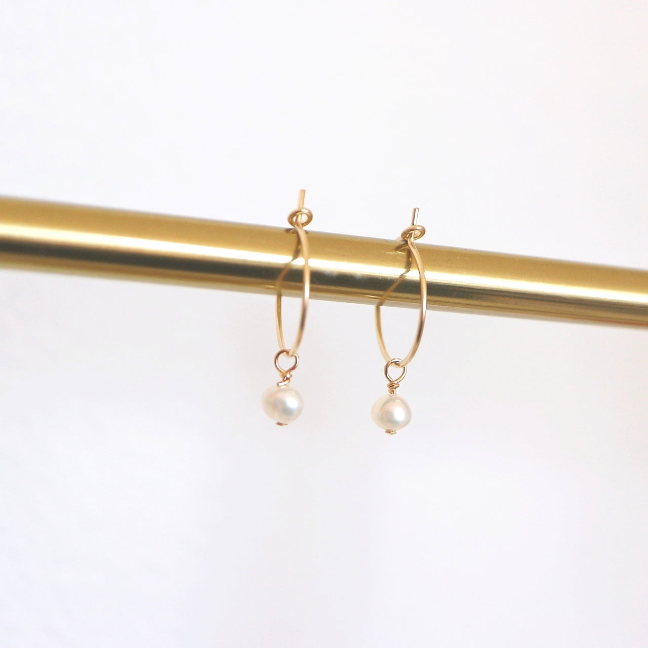 Tenké kroužky se sladkovodními perlami. Minimalistický nežný šperk, který je univerzálně nositelný a díky použitému zlacení také vhodný pro každodenní nošení.